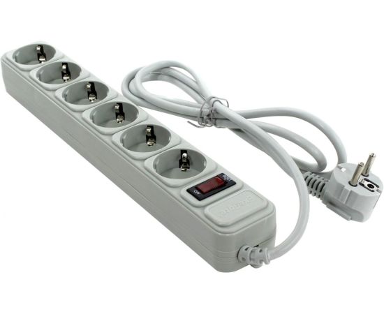 сетевой фильтр на 6 евророзеток, суммарная мощность нагрузки: 2.2 кВт, максимальный ток нагрузки: 10A, кабель 1.8м, серый