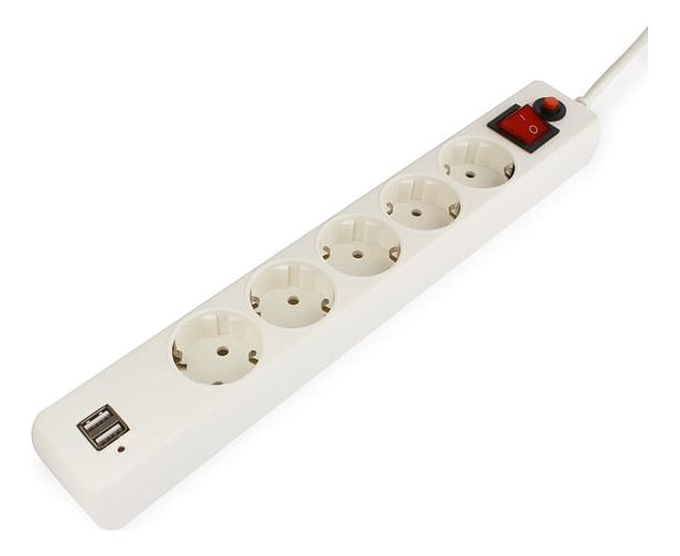 Сетевой фильтр Гарнизон ECL-5-U2-W-1.8 5р, 10А, 1.8м белый