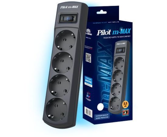 Сетевой фильтр Pilot m-MAX 3м (4 розетки) серый
