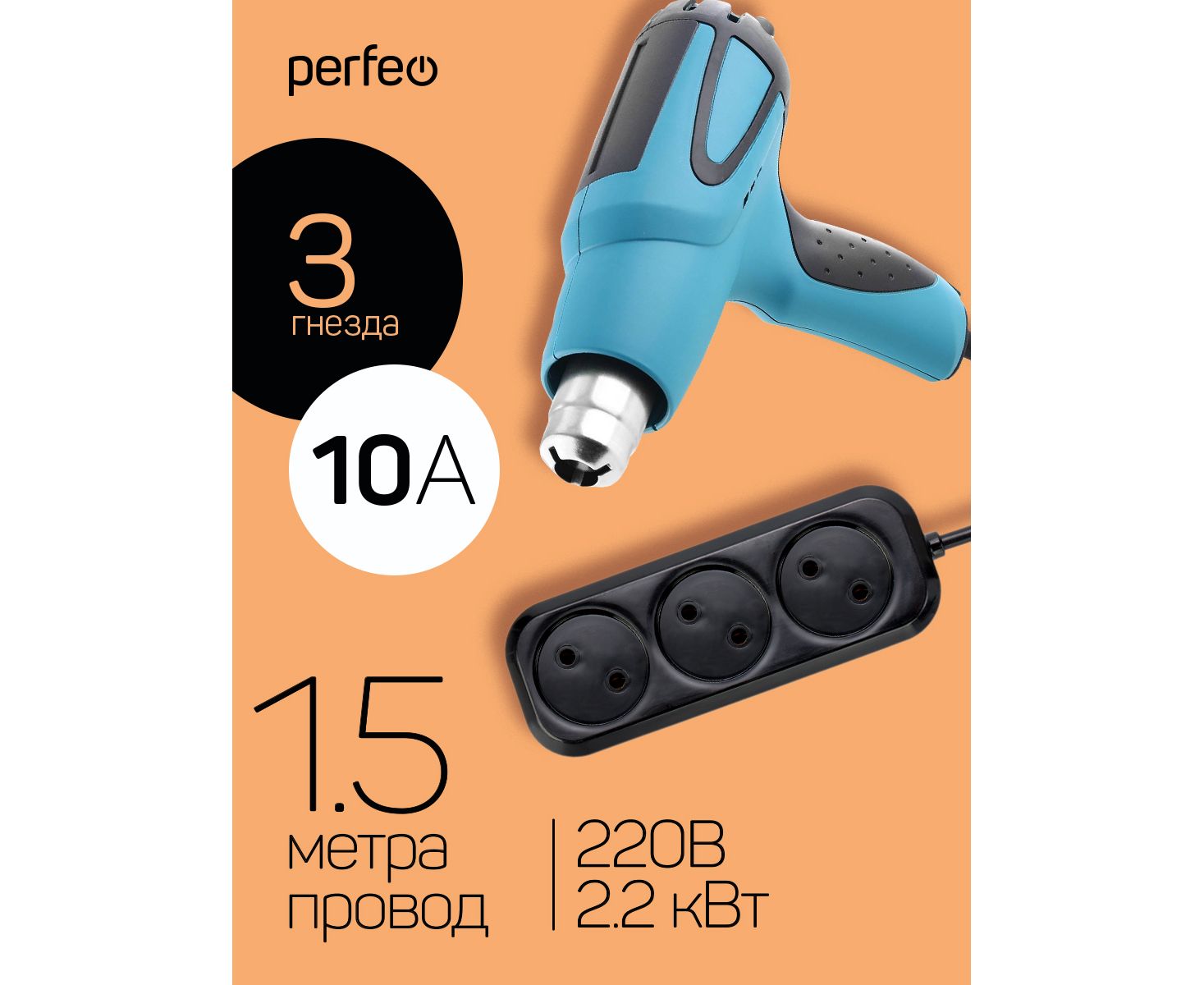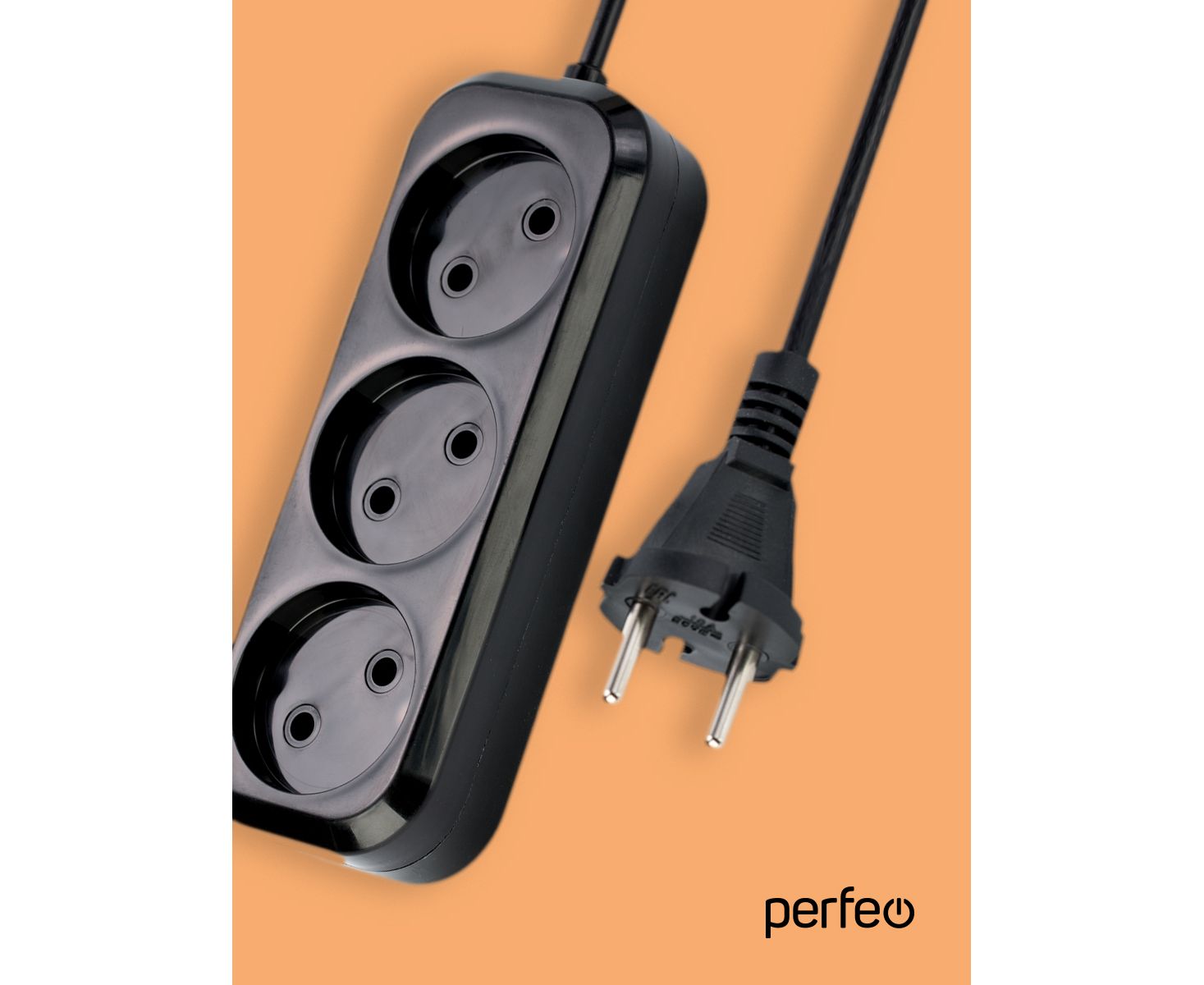 Сетевой удлинитель Perfeo "RU POWER", 1,5м, 3 розетки, без заземления, (Р16-012), чёрный