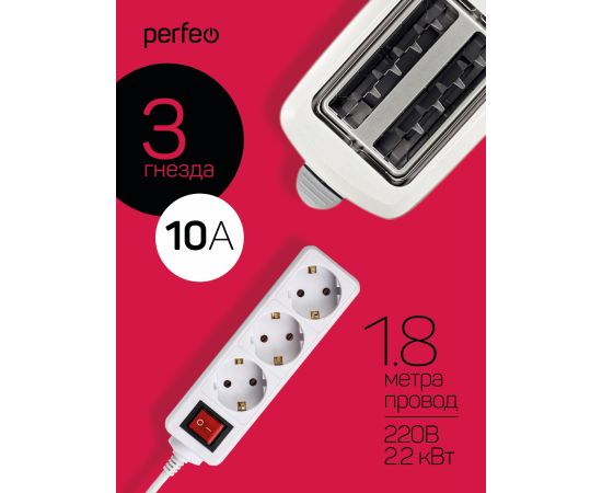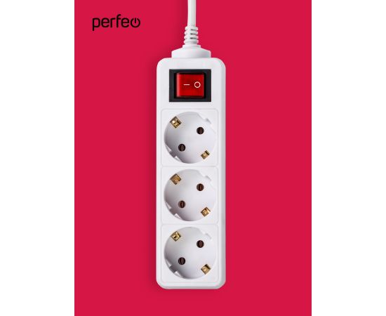 Сетевой удлинитель Perfeo с кнопкой "POWERMATE", 1,8м, 3 розетки, (PF-PM-3/1,8-W), белый