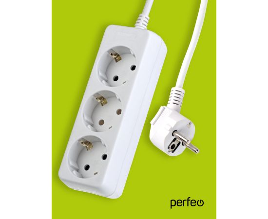 Сетевой удлинитель Perfeo "POWERMATE", 5,0м, 3 розетки, с заземлением, (PF-PE-3/5,0-W), белый