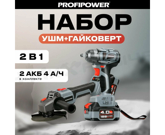 Гайковерт, Зарядное устройство, Кейс, Угловая шлифмашина
