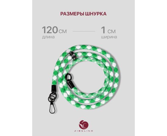 Шнурок универсальный 120см: для телефона на шею, для ключей, бейджа, пропуска, ремешок веревка через плечо, на руку, с карабином нейлоновый регулируемый, зелено-белый клетчатый