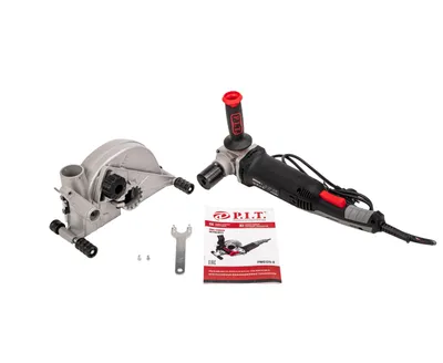 Комплектация Штроборез P.I.T. PWC125-C - 1 шт; дополнительная ручка, патрубок пылеотвода, опорный фланец, прижимной фланец; зажимной винт-барашек, распорные шайбы(комплект), специальный ключ; шестигранный ключ, кольцо фиксации патрубка