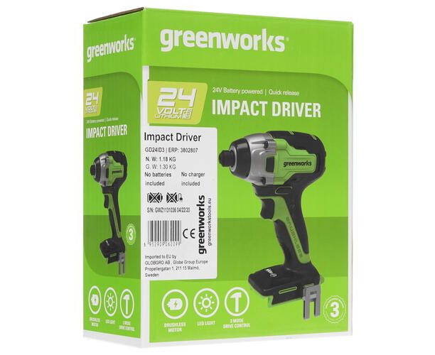 Шуруповерт аккумуляторный GREENWORKS GD24ID3 24 V без акб и з/у 3802807