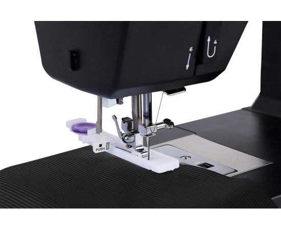 В работе со сложными толстыми швами, такими как боковые швы (брючин), предусмотрена специальная пластина, которая устанавливается под основную лапку. Она компенсирует перепады толщины материала и предотвращает пропуски стежков.