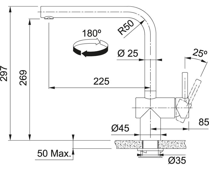 Высота излива, см: 26.9