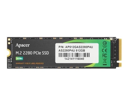 SSD Apacer AS2280P4U (AP512GAS2280P4U-1) 512Gb M.2 PCIe Gen3x4, R3500/W2300 Mb/s, MTBF 1.8M, 3D NAND, NVMe, Retail