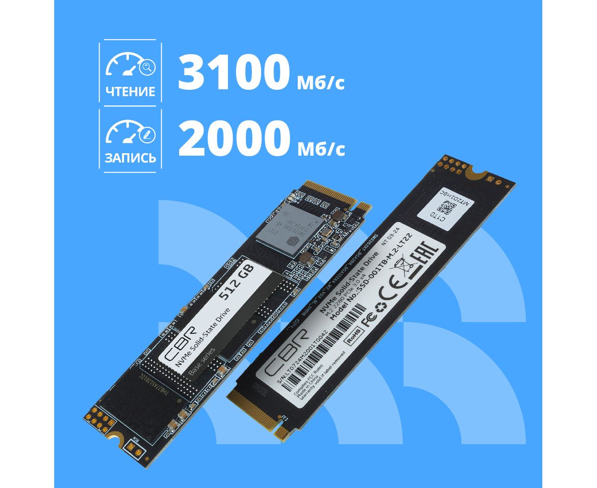 SSD CBR Base SSD-512GB-M.2-BS24b, 512 GB, M.2 2280, PCIe 3.0 x4, NVMe 1.3, 3D TLC NAND, R/W speed up to 3100/2000