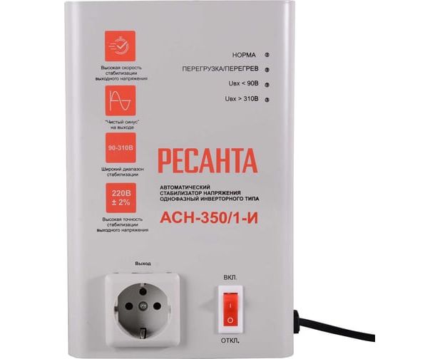 Стабилизатор напряжения Ресанта АСН-350/1-И 0.35кВА белый (63/6/74)