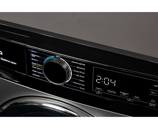 Дополнительные функции Выбор скорости отжима, Выбор температуры, Отложенный старт, Пар, Выбор интенсивности сушки, Блокировка от детей, Пауза, Дозагрузка белья, Отключение звукового сигнала