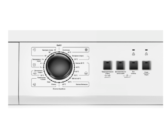 Без звука, Блокировка от детей, Отсрочка старта, Очистка барабана