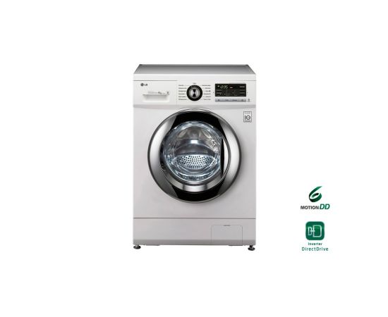 Стиральная машина LG F1096ND3 85x60x44см Класс: A+ загр.фронтальная макс.:6кг белый 1000 об/мин, барабан серебристый, дисплей