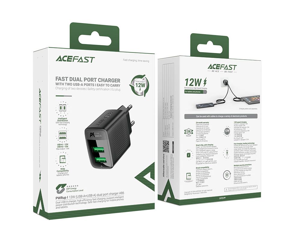 СЗУ ACEFAST A86 12W (USB-A+USB-A) dual port charger (EU) (черный)