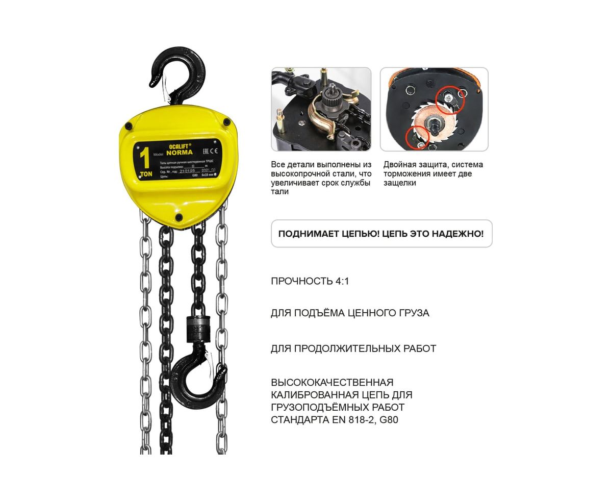 Таль ручная OCALIFT Norma ТРШ nm10006 шестеренная цепная 1т 6м