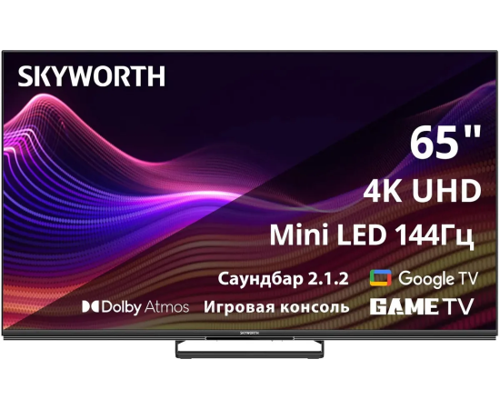 Телевизор Skyworth 65X87G QD-Mini LED Magic Sound Game TV Frameless черный 4K Ultra HD 144Hz MEMC DVB-T DVB-T2 DVB-C DVB-S DVB-S2 USB WiFi