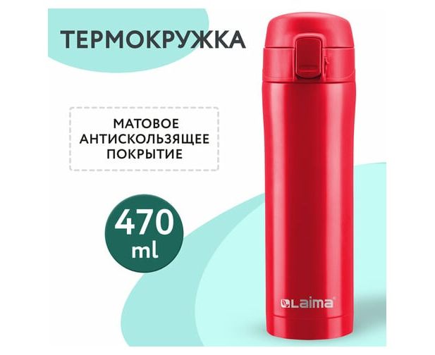 Термокружка LAIMA с двойной стальной стенкой изготовлена из нержавеющей стали марки 304 медицинского уровня. Сконструирована по вакуумной технологии.