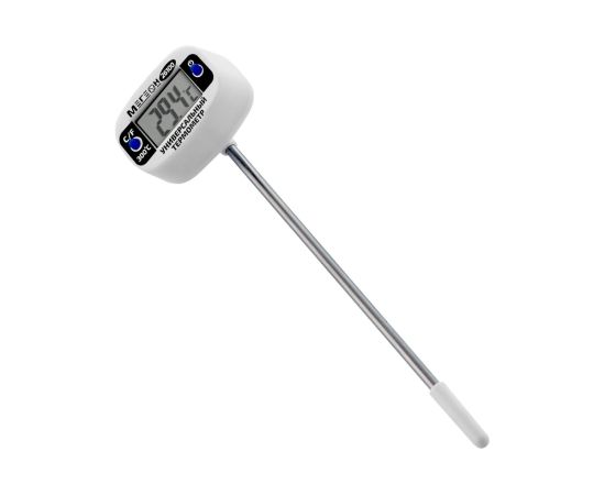 МЕГЕОН 26100 - новинка в модельном ряду цифровых термометров для промышленных и бытовых нужд. Представленная модель предназначена для замеров температуры с высокой точностью контактным методом в диапазоне -50 ... 300°C. Помимо этого изделие имеет вторую единицу измерения- Фаренгейты. Отличительной особенностью является возможность поворота экрана на 180°. Ручная установка единиц измерения и функция автоматического выключения при длительном простое, делают прибор более удобным в обращении. Зонд термометра изготовленный из нержавеющей стали, позволяет применять измеритель в отраслях связанных непосредственно с пищевыми продуктами, с нефтехимическими составами, с агрессивными жидкостями и материалами. Эргономичный дизайн и компактные размеры в полной мере смогут оценить профессионалы и любители.