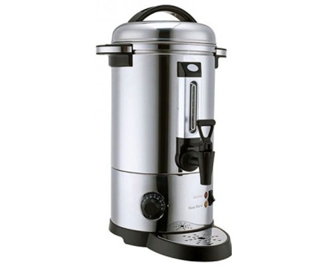 Заливной кипятильник GASTRORAG DK-LX-300 имеет прочный и гигиеничный корпус из нержавеющей стали с элементами из черной пластмассы и удобными ручками для переноски. Оборудование оснащено регулируемым термостатом, который позволяет задавать температуру воды в диапазоне 30-110оС, и защитой от «сухого» включения. Закрытый ТЭН упрощает процедуру ухода и очистки от накипи. Розлив воды осуществляется через пластмассовый кран, расположенный в нижней части устройства.