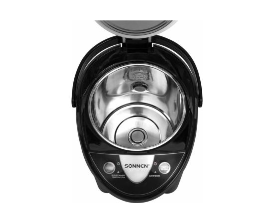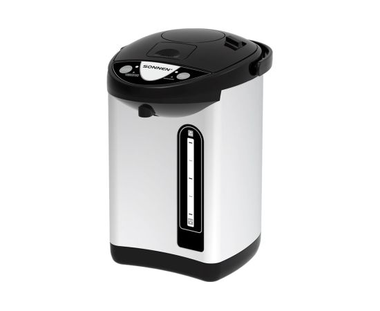 Термопот SONNEN TP-38, 4л, 900Вт, 1 температурный режим, 3 режима подачи воды, сталь, черный/серебро