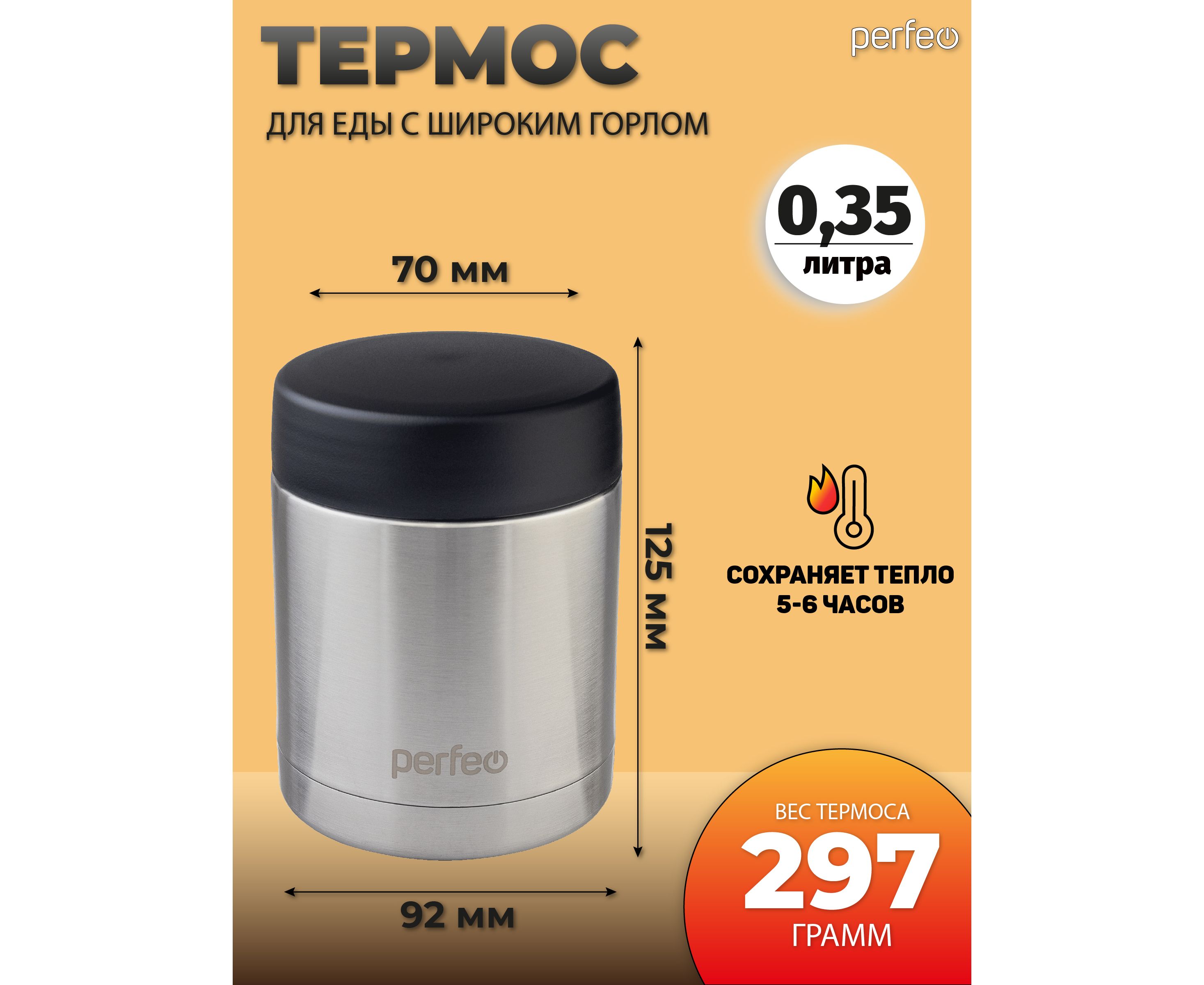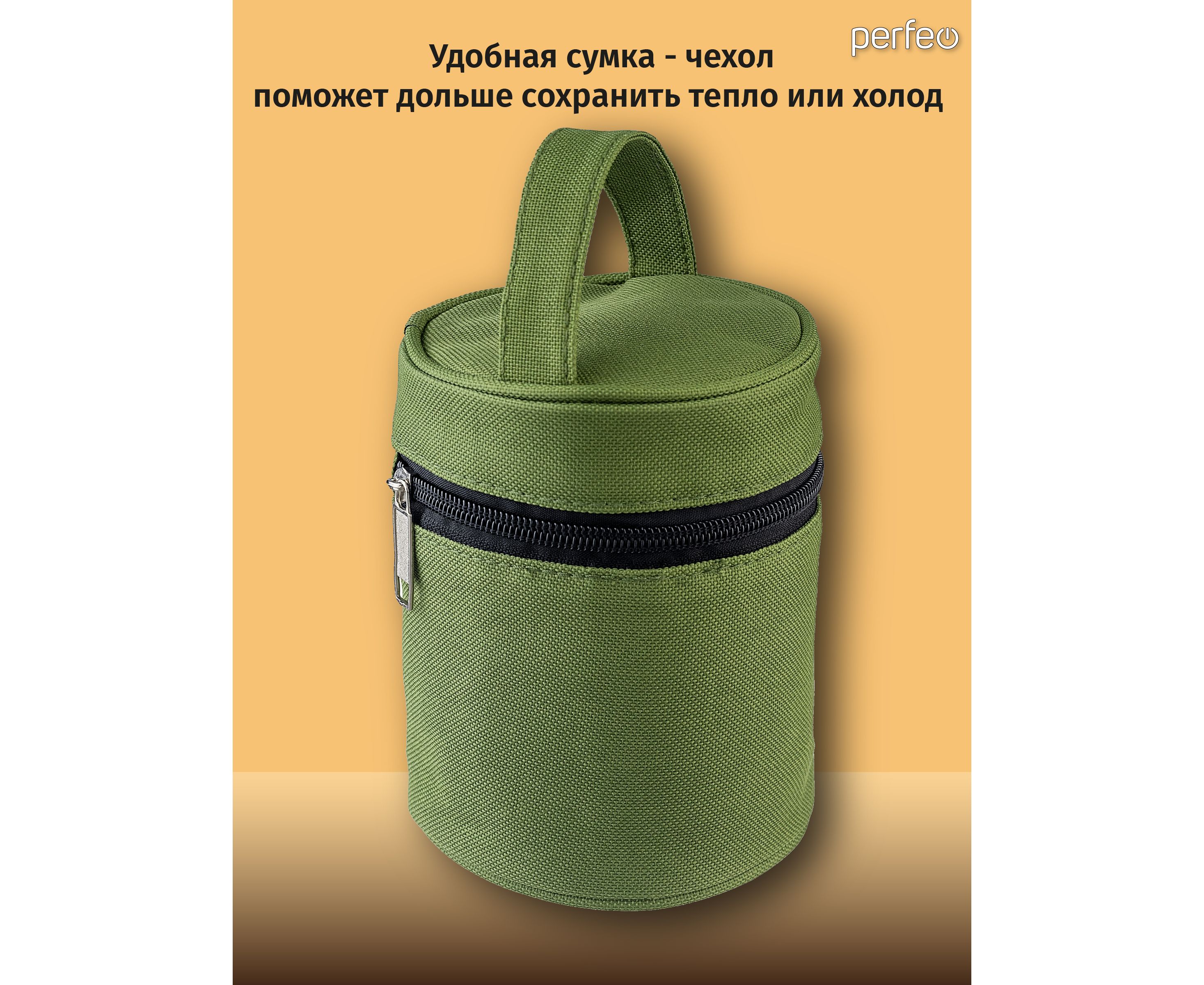 Термос для еды PERFEO с широким горлом, сумкой, объем 0,35 л., нержавеющая сталь (PF_E1380)