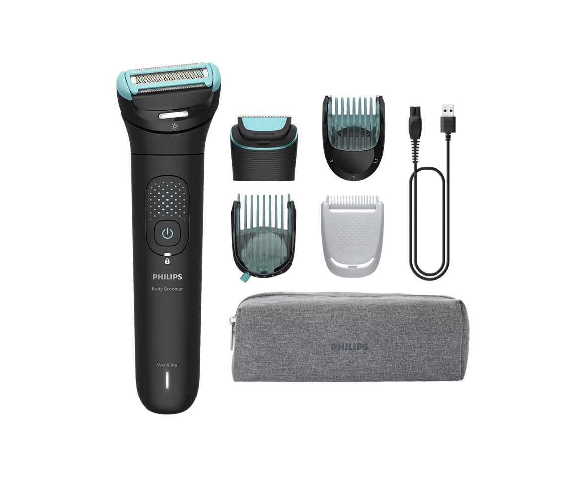насадка-бритва (2 шт.), насадка для чувствительных зон, регулируемая насадка, гребень для тела