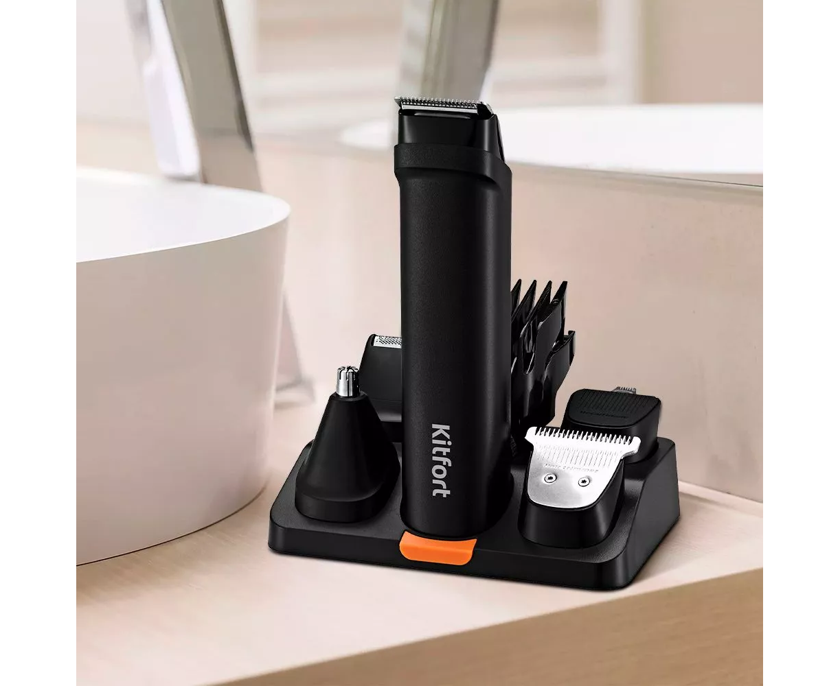 Триммер Kitfort КТ-3140-2 черный/оранжевый (насадок в компл.7шт)