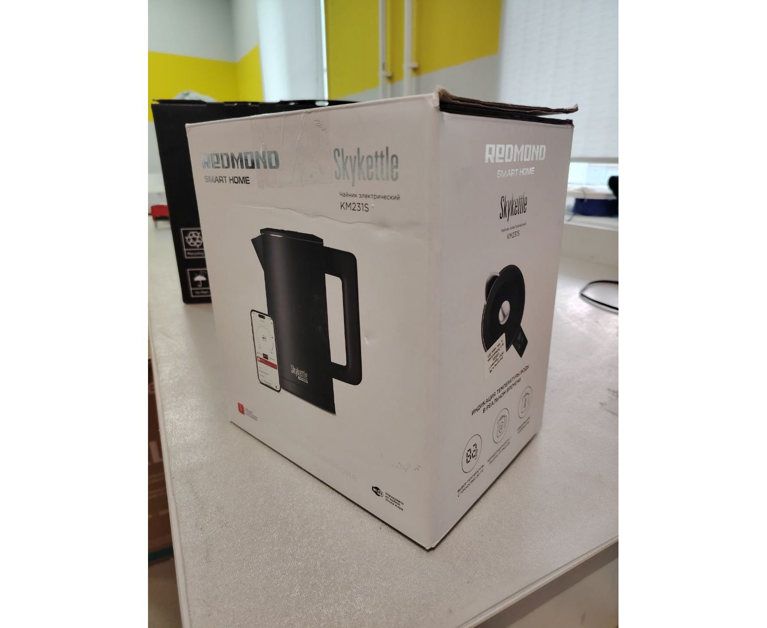 УЦ Электрочайник Redmond KM231S SkyKettle черный (плохая упаковка, трещина на пластике крышке, осколки пластика в крышке)