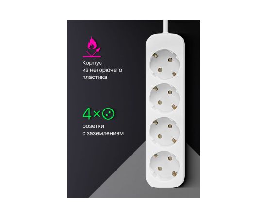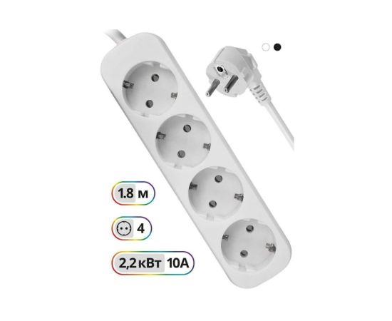 Удлинитель DEFENDER E418 1.8 м, 4 розетки, заземление (99225)