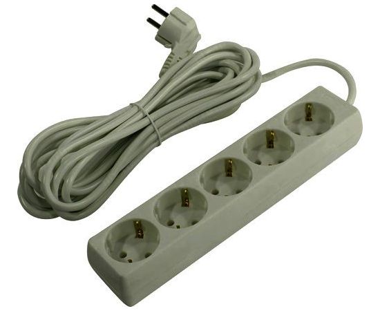 сетевой удлинитель, 5 евророзеток, максимальная мощность нагрузки 2.2 кВт, 3 м, серый