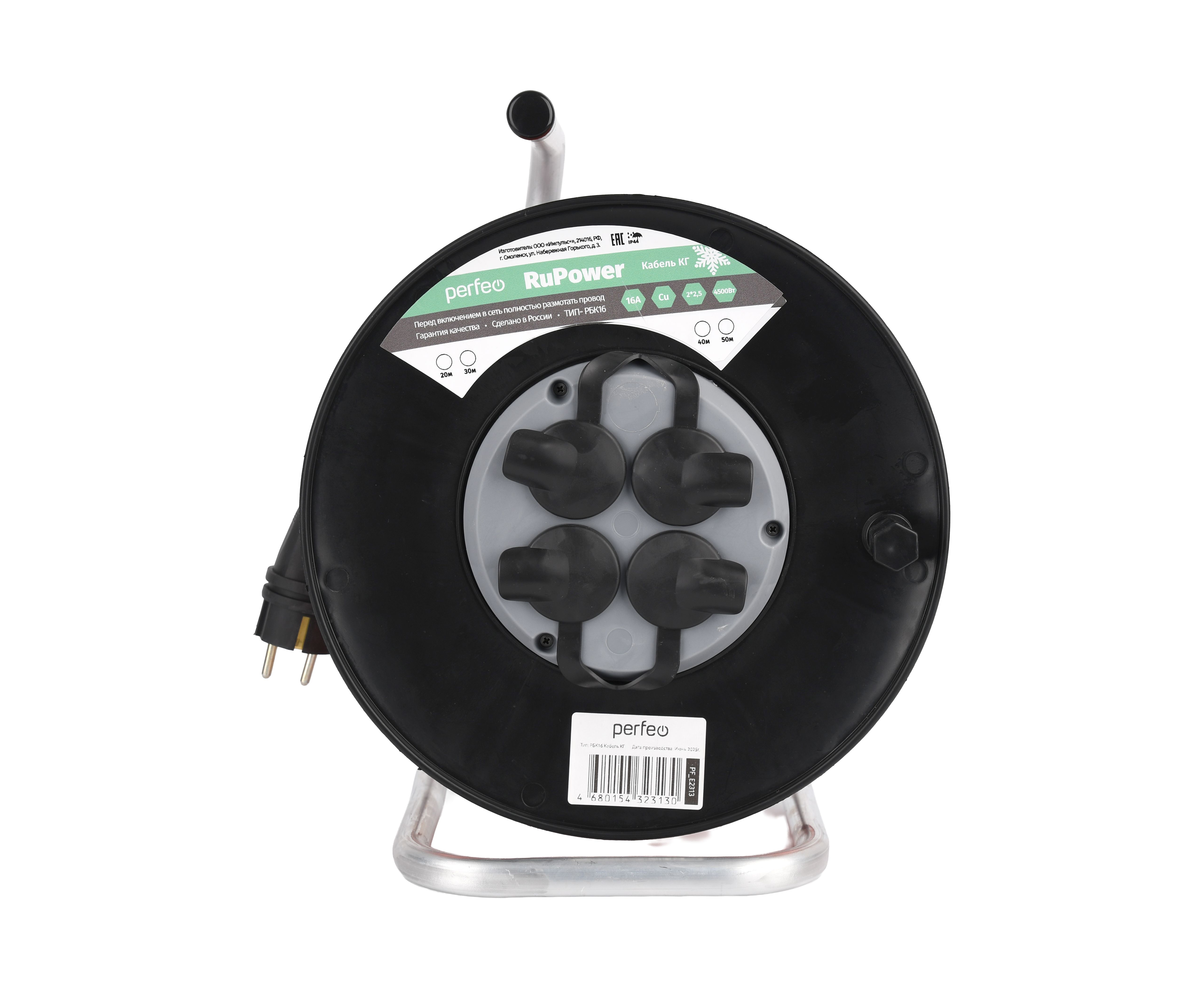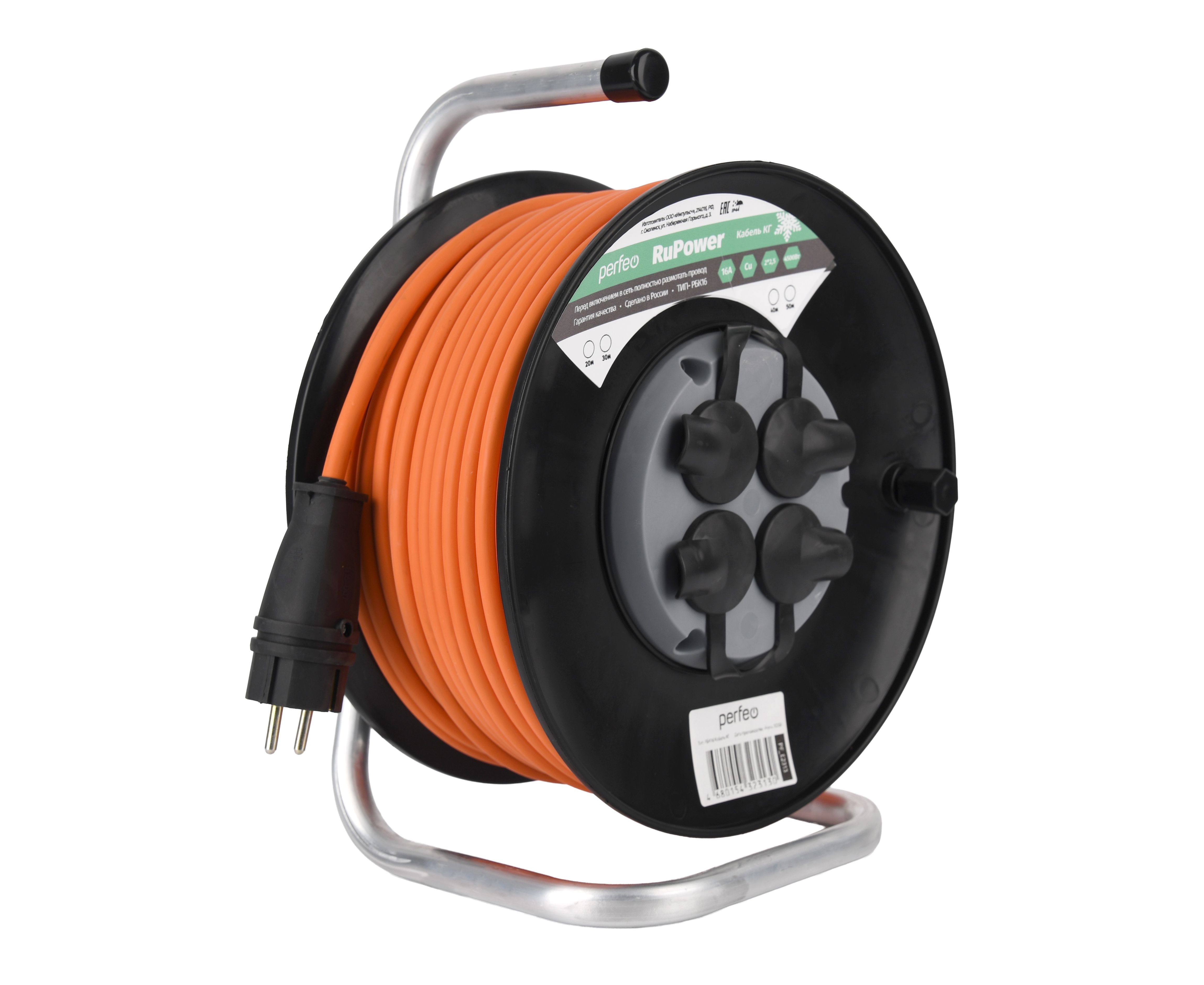 Удлинитель на катушке без заземления Perfeo "RU POWER" 30м 4гн 16А КГ 2х2,5 IP44 (РБК16) оранж