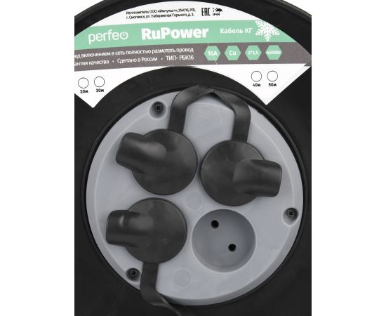 Удлинители на катушках Perfeo «RuPower» - спасение в ситуациях, когда стандартной длины шнура питания становится недостаточно. Они идеально подойдут для подключения ремонтного, строительного и другого оборудования. Модель имеет защиту от влаги и пыли IP44 и может эксплуатироваться в помещениях с повышенным уровнем влажности или на улице под крышей. Защита от воды и пыли: IP44. Медный провод выдерживает заявленную нагрузку. Рукоятка для переноски и металлическая подставка для удобства размещения и устойчивости. Гибки кабель КГ позволяет работать с данным удлинителем в холодное время года.