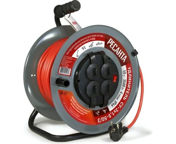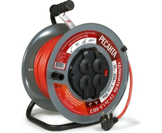 Удлинитель силовой Ресанта СУ-3х1,5-50/3 на металлической катушке, с выкл., 4 розетки, IP44 61/118/8