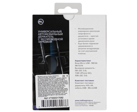 Универсальный автомобильный держатель с БЗУ, модель HOL-06, цвет черный