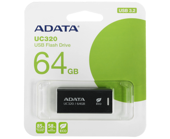 USB-флешка A-DATA UC320 (UC320-64G-RBK/BK) 64GB USB 3.2, черный выдвижной