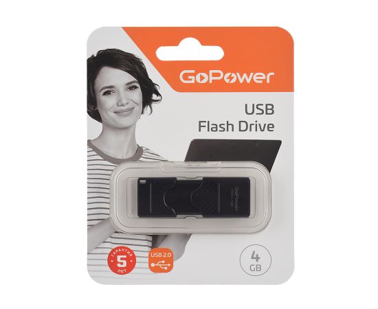 USB-флешка GoPower Slider 00-00025961 4GB USB2.0 пластик черный