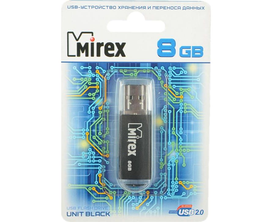 Flash Drive 8GB USB 2.0 Mirex Unit, Черный (13600-FMUUND08)