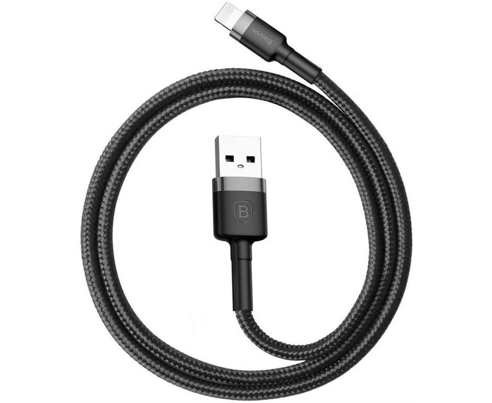 USB-кабель Baseus CALKLF-BG1, Apple 8 pin, ткань, 1.0 м, круглый, мет. разъем, черно-серый