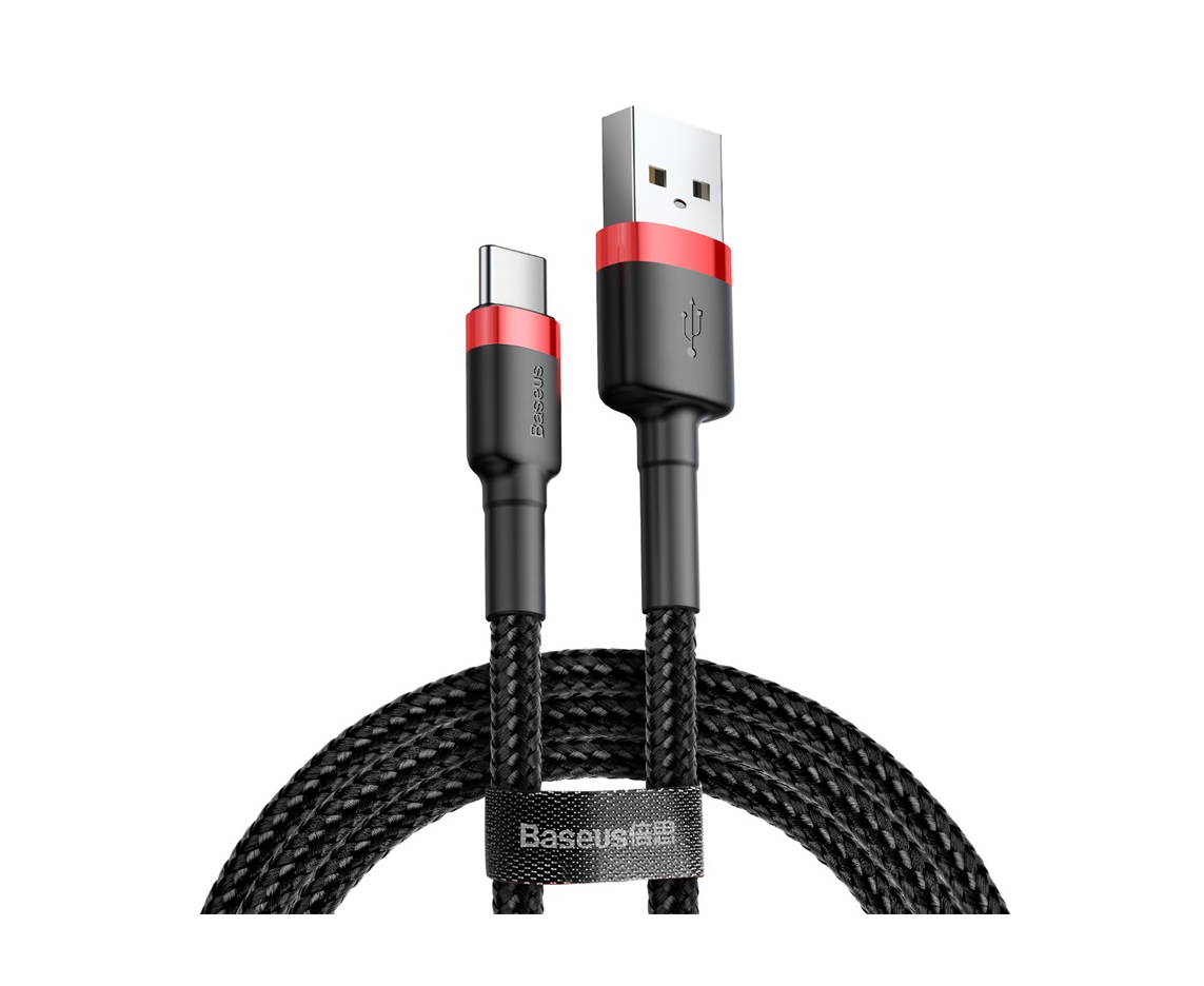 USB-кабель Baseus CATKLF-B91, Type-C, ткань, 1.0 м, круглый, металлический разъем, черно-красный, фирменная упаковка