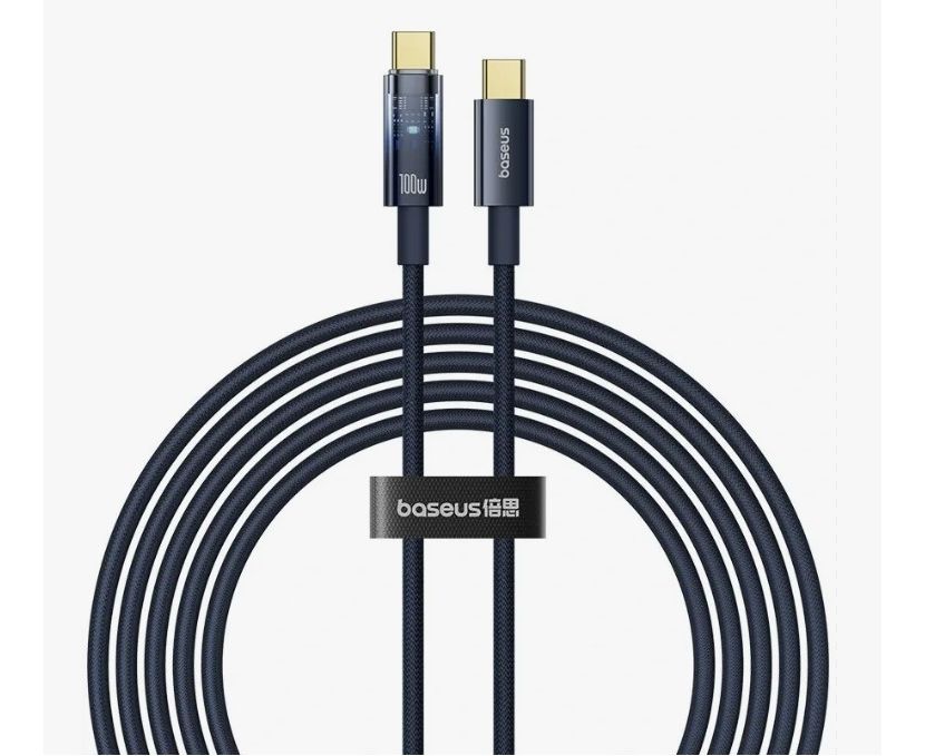 USB-кабель Baseus Explorer P10319703111-00, Type-c/Type-C, 100W, ткань, 1.0 м, круглый, синий, фирменная упаковка