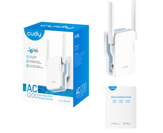 Усилитель сигнала Wi-Fi Cudy RE1200 AC1200, 1 порт RJ45 10/100Мбит/с, WPS