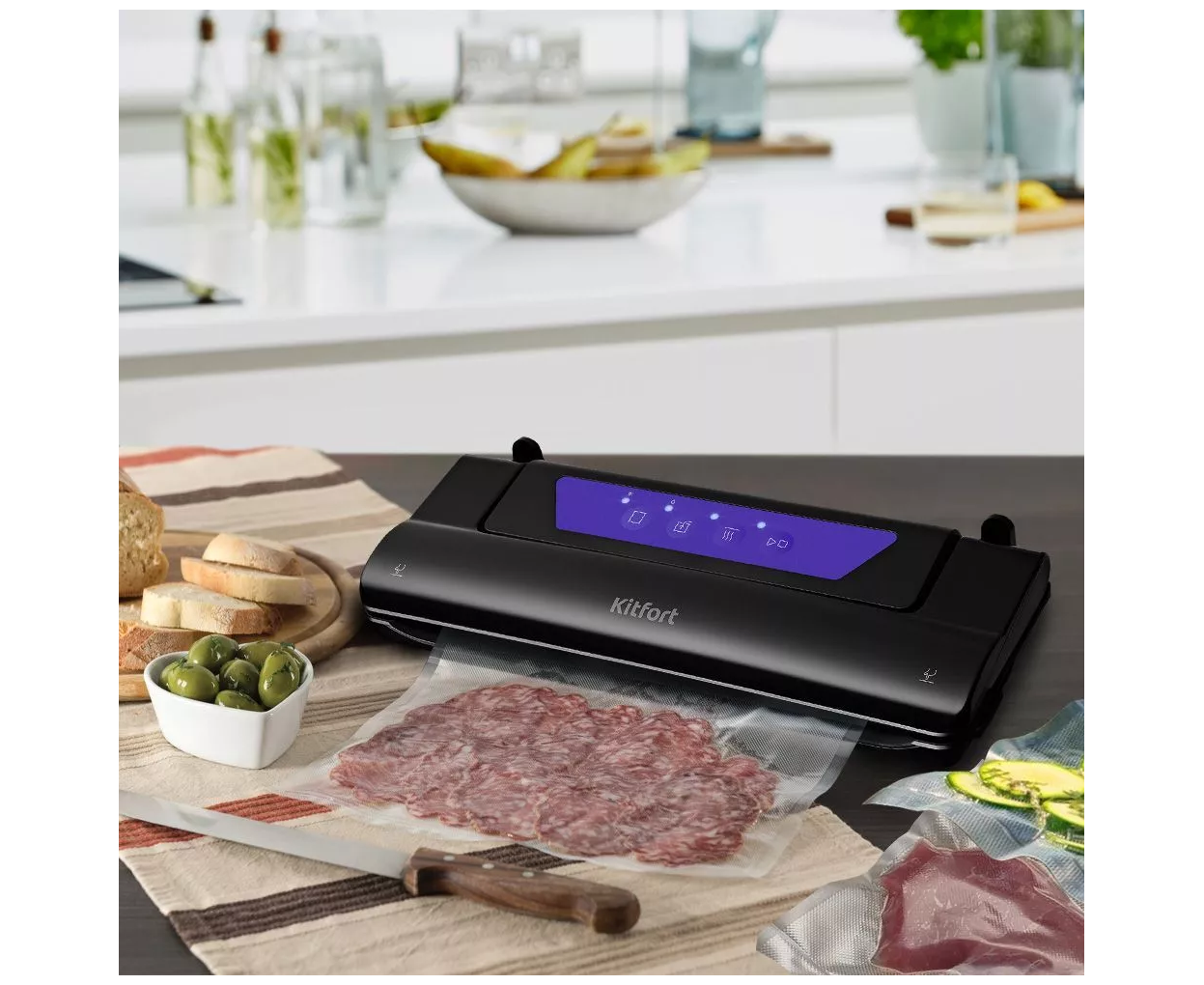 Вакууматор Kitfort КТ-1528 - современный прибор, призванный увеличить сроки хранения пищевых продуктов. Продукты, упакованные под вакуумом, сохраняют свежесть и не портятся существенно дольше по сравнению с обычными условиями хранения.