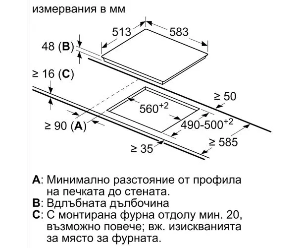 Габариты ниши для встраивания (ШxГ) 56x49-50 см