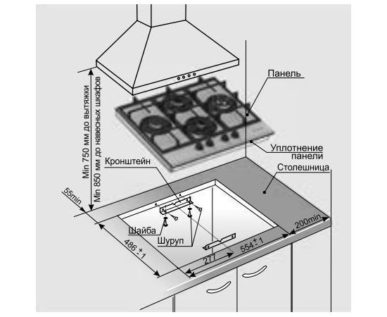 | Размеры ниши для встраивания (ШхГ) | 554 х 486 мм |