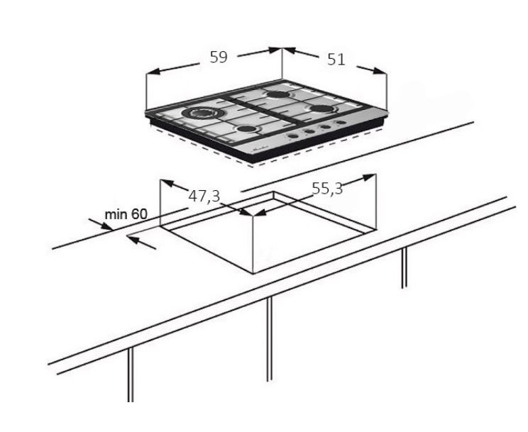 Размеры для встраивания (ШхГ) 553x473 мм
