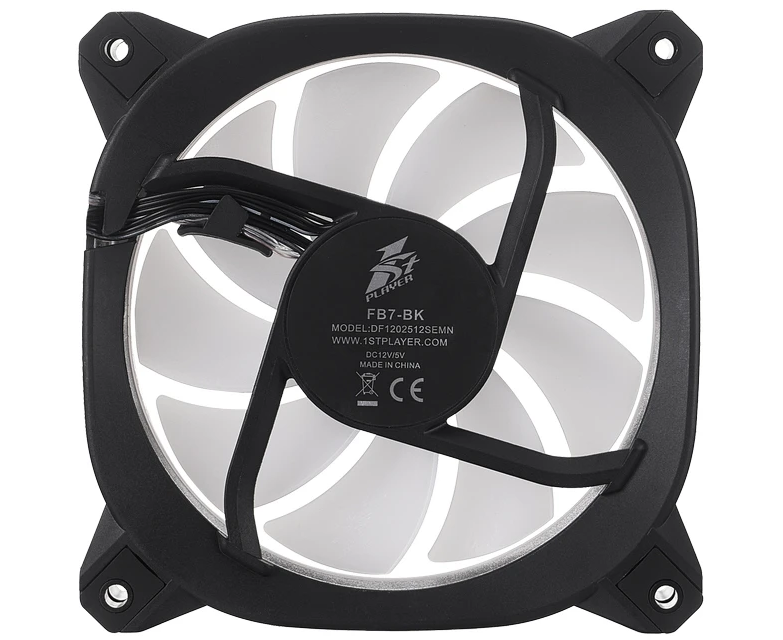 Вентилятор 1STPLAYER FB7 Black (FB7-BK) / 120mm ARGB 3pin 5V PWM 4pin 12V 600-1800rpm 45.12cfm 47.2dBA / Bulk