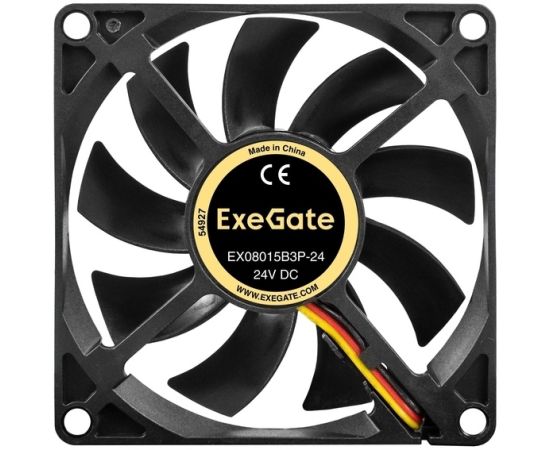 Вентилятор Exegate 24В DC EX08015B3P-24 EX297080RUS (80x80x15 мм, 2-Ball (двойной шарикоподшипник), 3pin, 2550RMP, 30,5dBA)