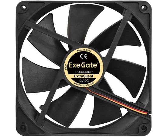 Вентилятор Exegate ExtraSilent ES14025B3P EX288928RUS (140x140x25 мм, 2-Ball (двойной шарикоподшипник), 3pin, 1300RPM, 24dBA)