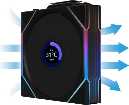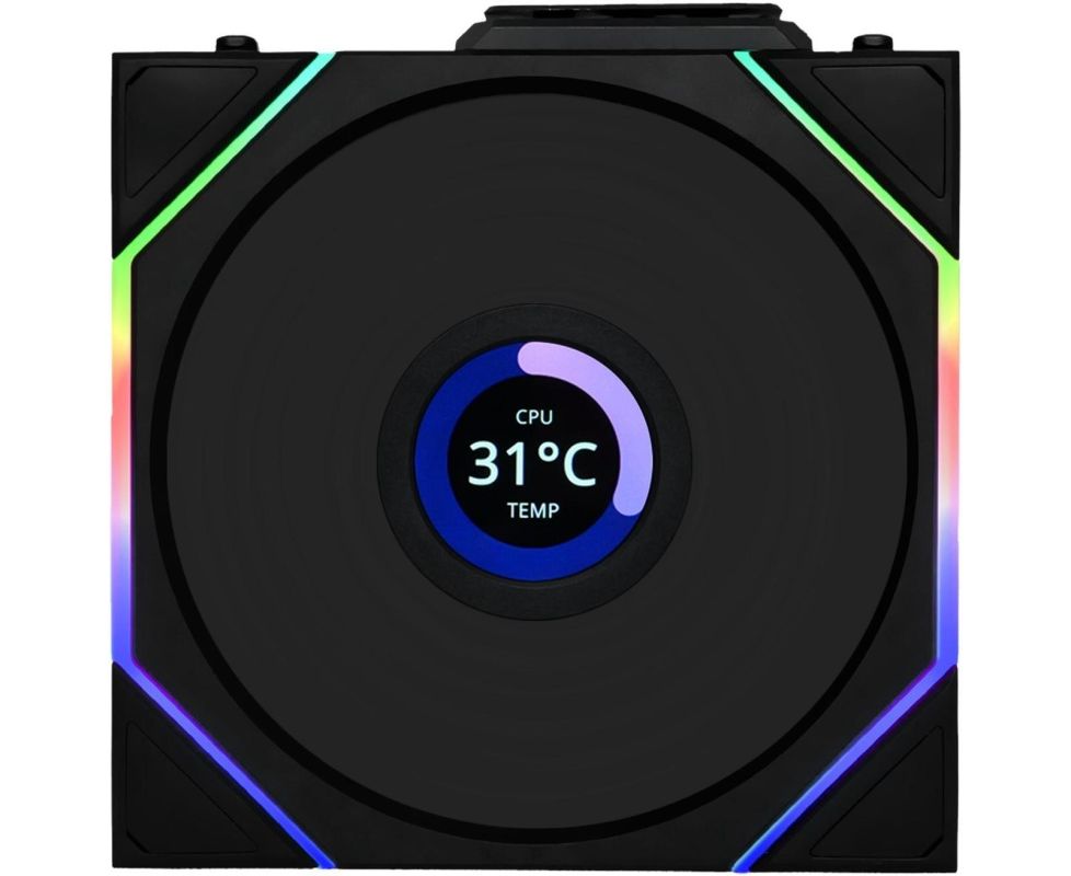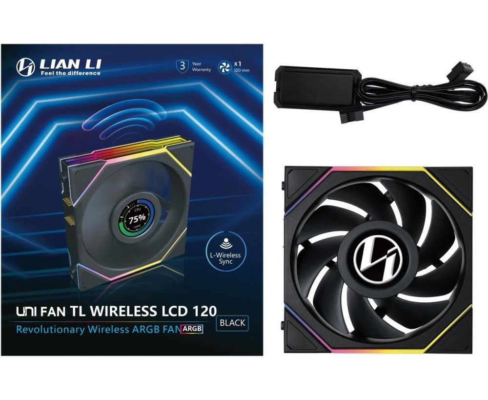 Вентилятор Lian-Li Uni Fan TL Wireless LCD 120 LCD ARGB (G99.12TLLCD1W1B.R0) 120х124x28 черный 4-pin 27дБ Ret